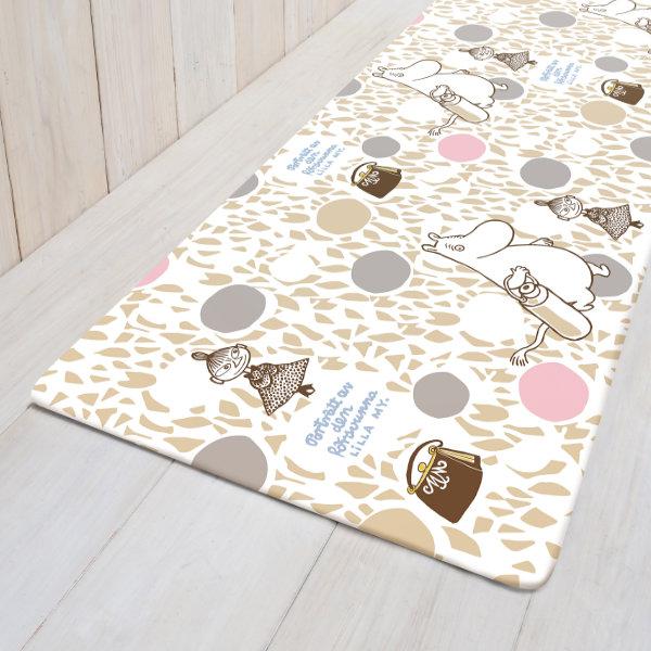 北欧テイストでかわいいMOOMIN柄のPVCキッチンマット。水しぶきや油汚れも、サッとひと拭きで簡単にきれいになり、お洗濯不要だから、家事の時短・水道代、電気代の節約になります。