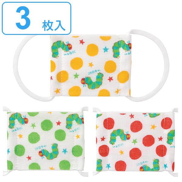 マスク 赤ちゃん はらぺこあおむし 3枚 セット ガーゼマスク ベビー ( ベビーマスク ベビー用マスク ベビー用ガーゼマスク 布マスク 小さめ あおむし 抗菌 防臭 洗える 綿100% ガーゼ ベビー用 キャラクター )