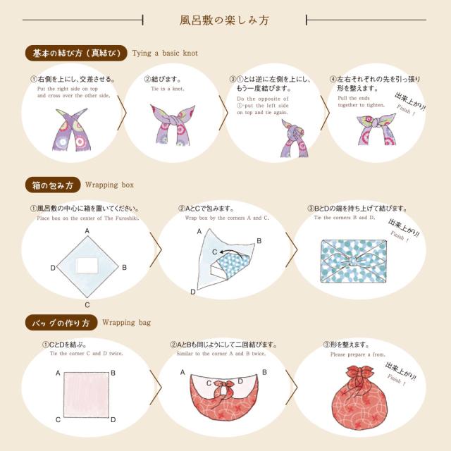 菓子折りや重箱・一升瓶などのラッピングにも使いやすい、大判の三巾(約100cm×100cm)サイズの風呂敷です。