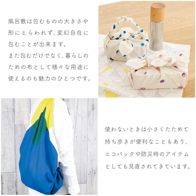 エコバックとして使うと、向きによって柄の見え方が変わる風呂敷ならではのデザインとなっております。