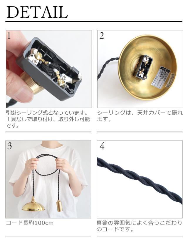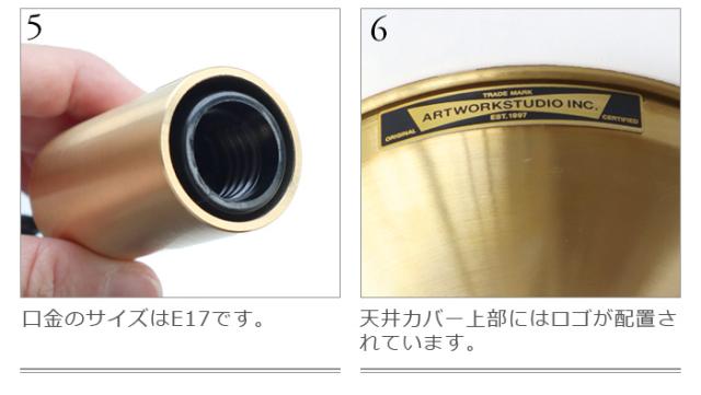 | 素材の性質上、素手で触ると指紋の痕が残りやすく、磨いても落ちにくいことがあります。指紋汚れを防ぐため、作業の際には必ず軍手や手袋などを着用してください。また本製品は経年と共に酸化による黒ずみが発生する事があります。ビンテージの風合いが持ち味の素材となっており不良品ではございません。 傾斜天井への取り付けについて:器具落下や故障の原因になりますので、傾斜のある天井や傾斜を合わせた舟底天井には絶対に取り付けないでください。必ず平らな天井に取り付けてください。 |