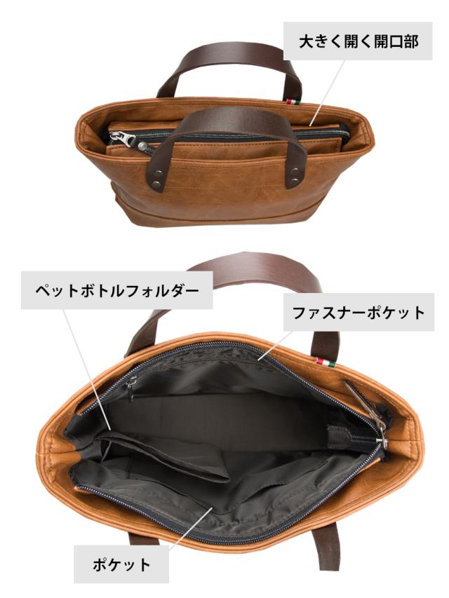表情豊かな合皮にイタリアンレザーのハンドルを組み合わせた 通勤やドライブなどデイリーで活躍する使いやすいミニトートです。