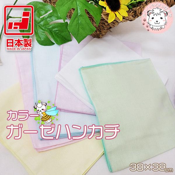 ガーゼハンカチ カラーハンカチ 大判 2重ガーゼ 日本製 約38cm×38cm