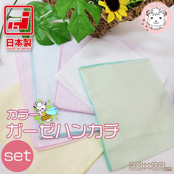 ガーゼハンカチ カラーハンカチ 6枚セット 大判 2重ガーゼ 日本製 約38cm×38cm