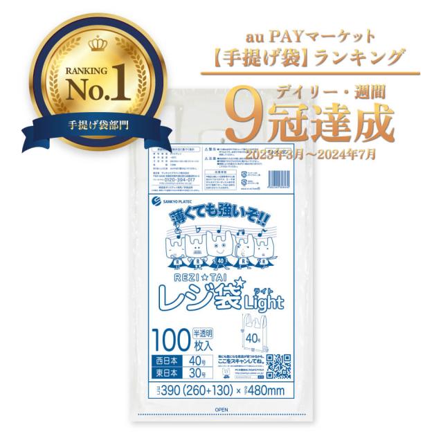 レジ袋 40号 (東日本30号) Lサイズ 半透明 薄手タイプ ブロック有 0.013mm厚 100枚x10冊 RHK-40kobako 買い物袋 手提げ袋 持ち手付き袋 携帯ゴミ袋 ナチュラル サンキョウプラテック 送料無料