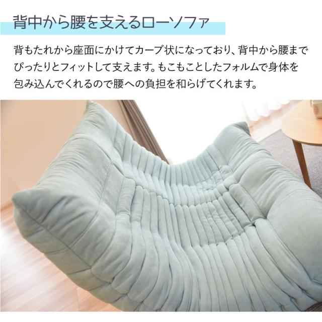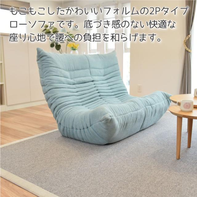 3段階リクライニング機能付きで、もこもことしたかわいいフォルムの2人掛け用ローソファです。