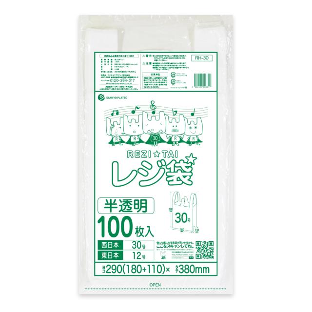 【バラ販売】RH-30bara レジ袋 厚手タイプ 西日本30号(東日本12号) 0.014mm厚 半透明 100枚/手提げ袋 買い物袋 持ち手付き袋