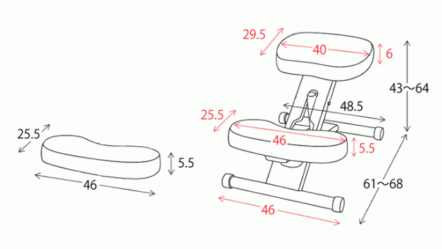 外 寸:W 495 × D 610 〜 680 × H 430 〜 640 mm