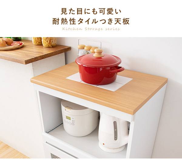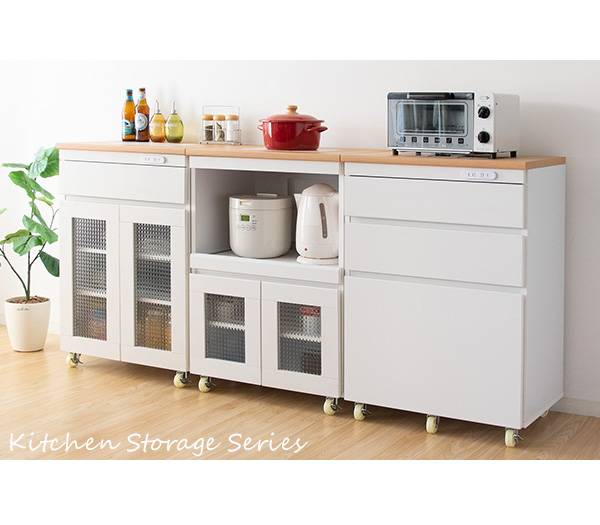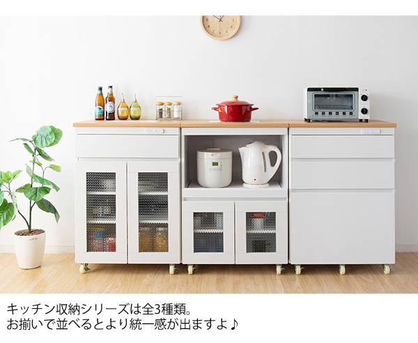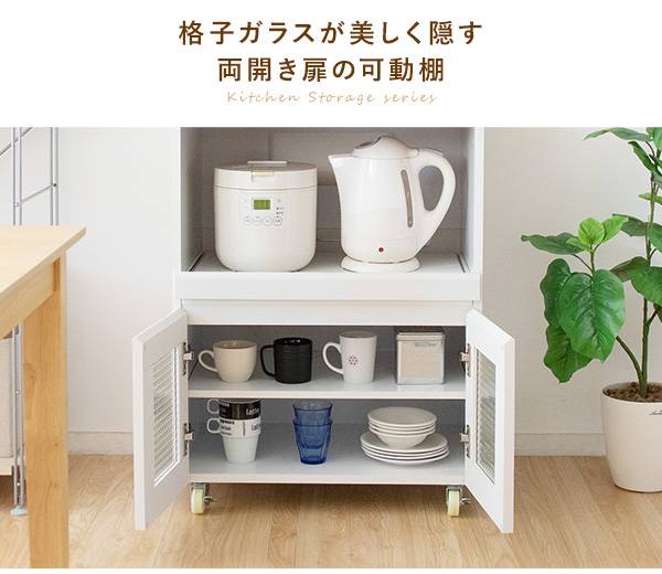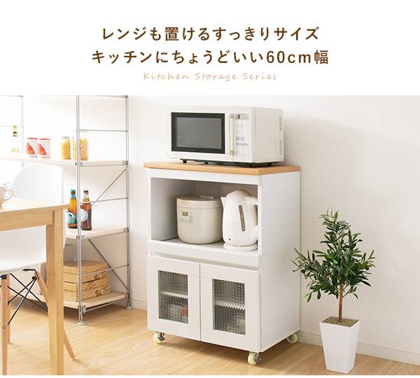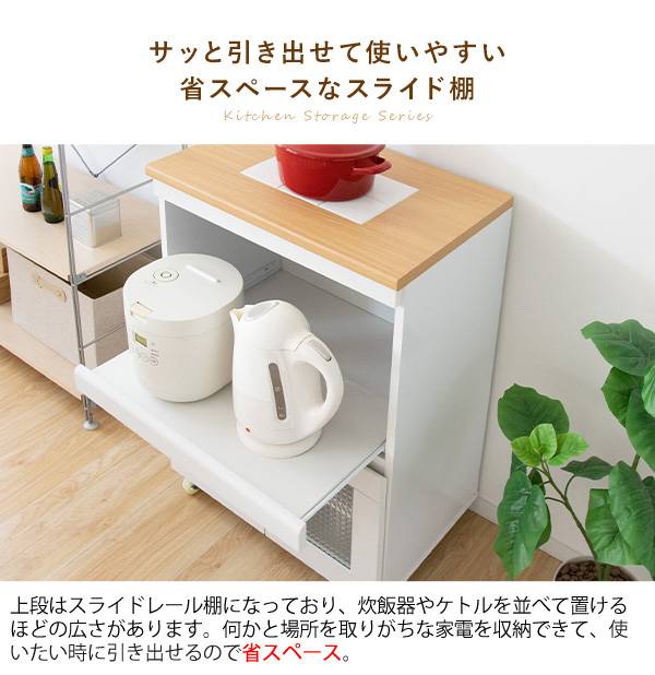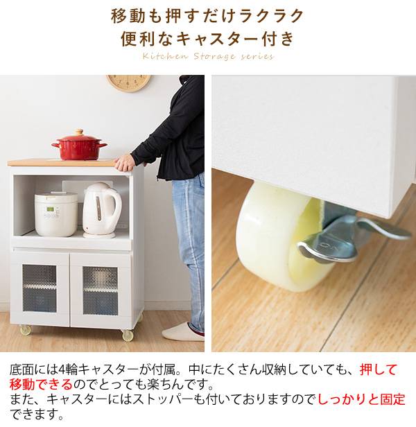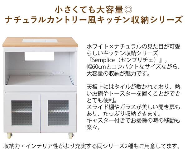 キッチン収納シリーズ 家電収納タイプ レンジ台 カウンター キャスター付き ホワイト Semplice(センプリチェ)