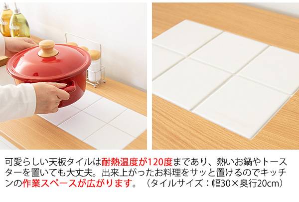 備考 組立品(約45分)、コンセント付き、天板タイル耐熱温度:120度