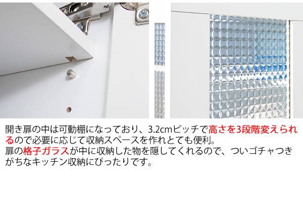 耐荷重 天板:20kg、レール棚:3kg、可動棚:6kg