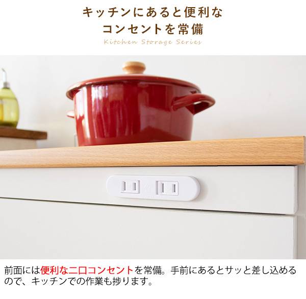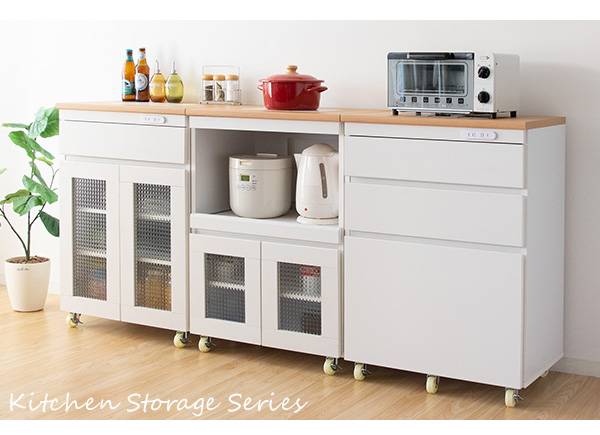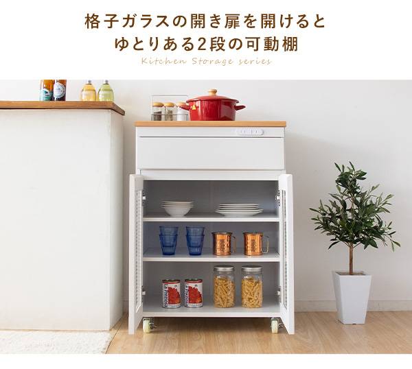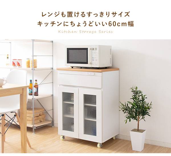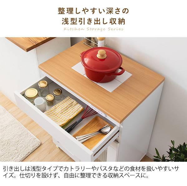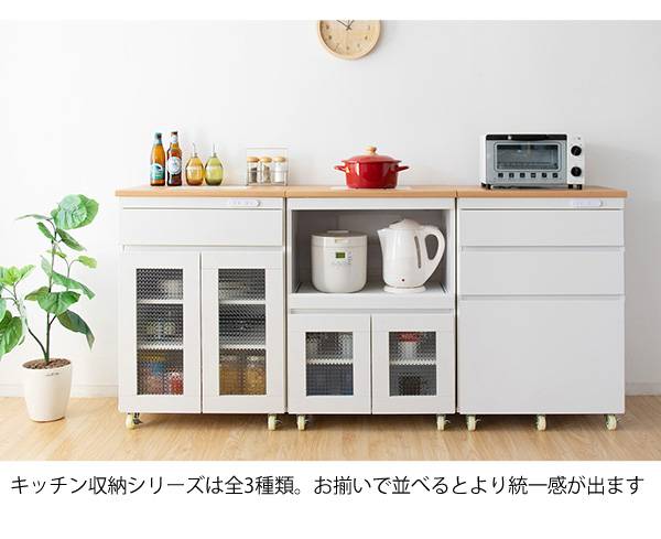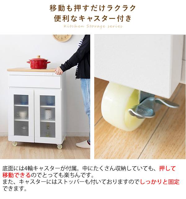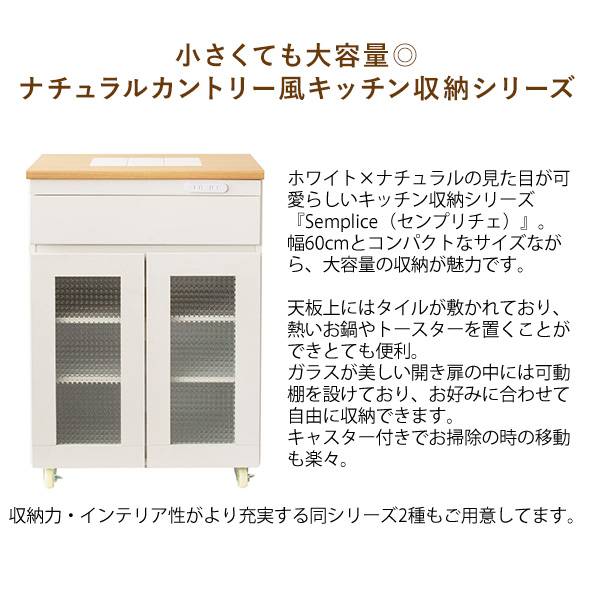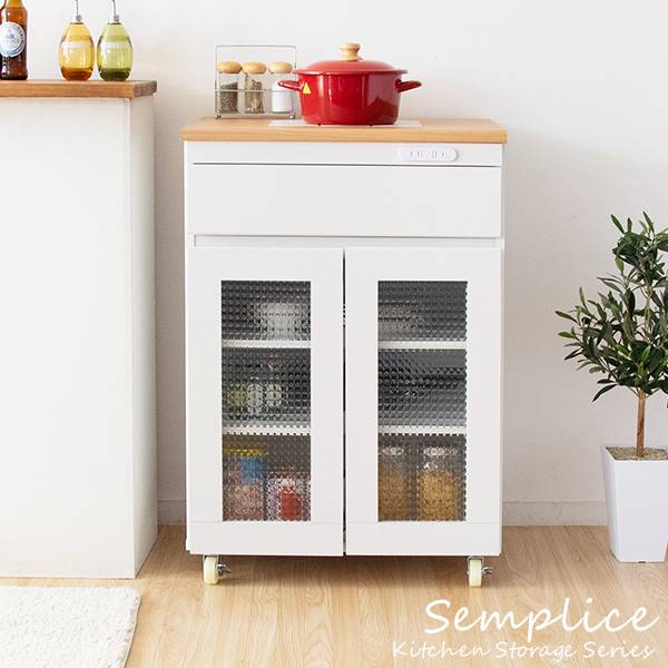 キッチン収納シリーズ キャビネットタイプ レンジ台 カウンター キャスター付き ホワイト Semplice(センプリチェ)