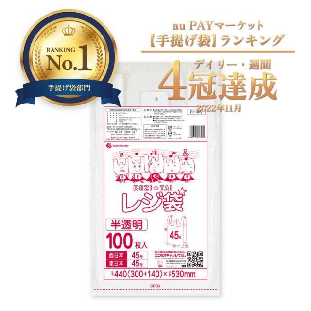 【小箱販売】RH-45kobako レジ袋 厚手タイプ 西日本45号(東日本45号) 0.019mm厚 半透明 100枚x10冊/手提げ袋 買い物袋 持ち手付き袋 送料無料