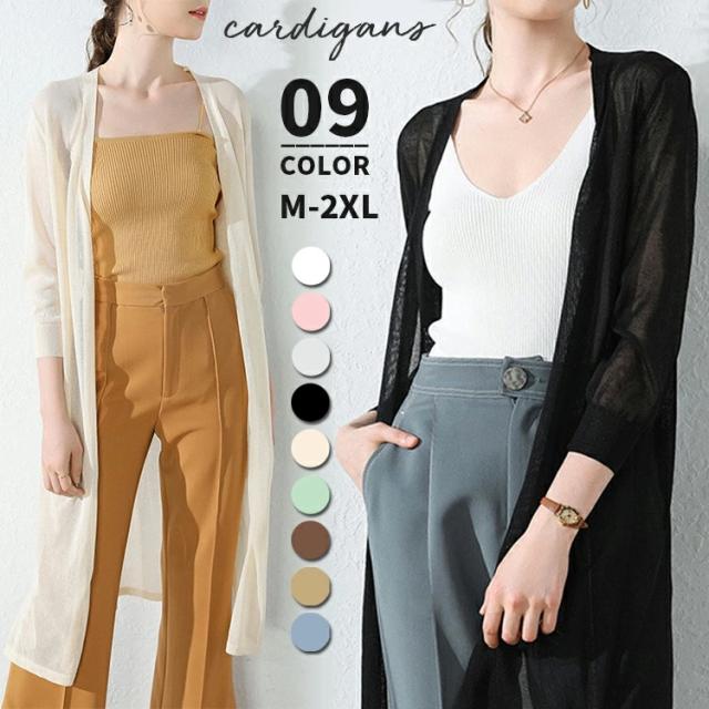 ロングカーディガン 薄手 夏 カーディガン レディース 春夏 ロング 七分袖 uvカット シースルー 透け感 ボタンなし 大きいサイズ ゆったり おしゃれ 大人 かわいい シンプル 無地 涼しい 体型カバー 羽織り オフィス 事務 日焼け対策 通勤 黒 白 ピンク