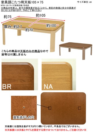 家具調コタツ用天板105x75 BR/NA(天板のみ)