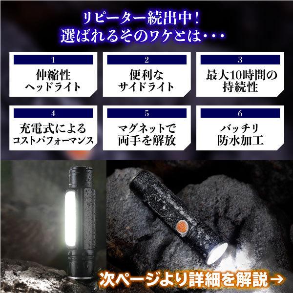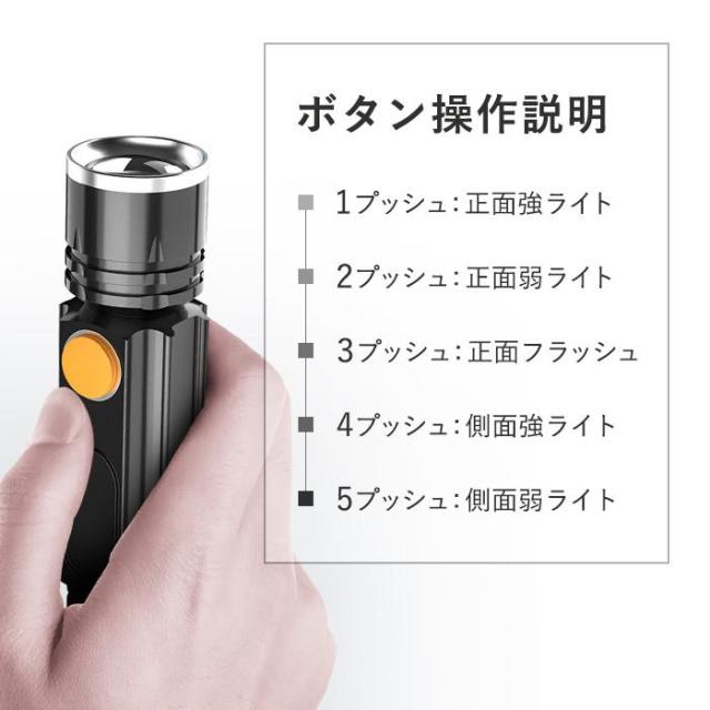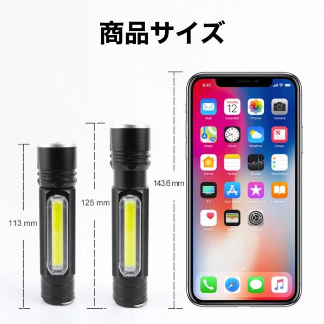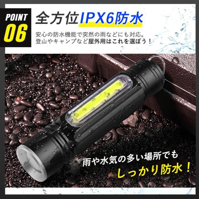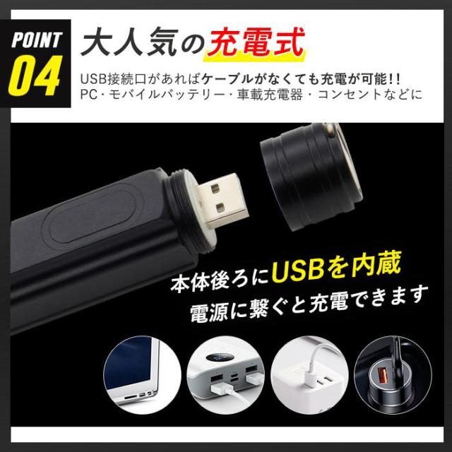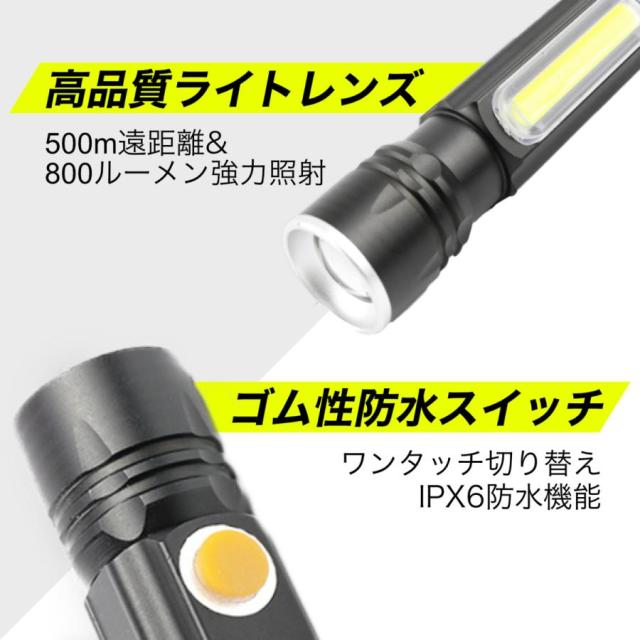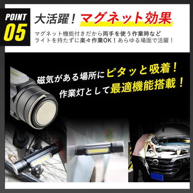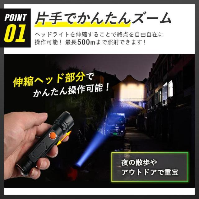 懐中電灯 強力 充電式 作業灯 軍用 防水 ledライト 高輝度 照明 明るい ライト ヘッドライト 防犯グッズ 防犯 ライト 小型 ハンディライト サイドライト USB充電 マグネット 伸縮 防犯 屋外 送料無料 ワークライト 釣り 登山 アウトドア 災害
