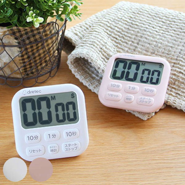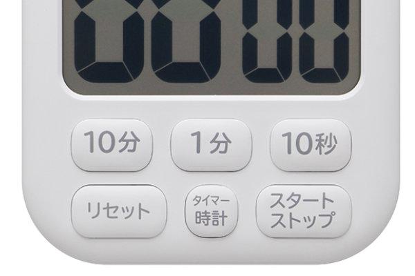 文字を大きくはっきり大画面表示するので、残り時間が見やすいです。10分、1分、10秒単位で時間を設定できるので、忙しい時もスムーズにタイマーのセットやモード切替などができます。また、時計機能がついているので、キッチンクロックとしても使用できます。