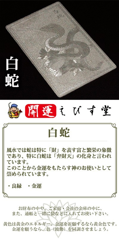 風水では蛇は特に「財」を表す富と繁栄の象徴であり、特に白蛇は「弁財天」の化身と言われています。