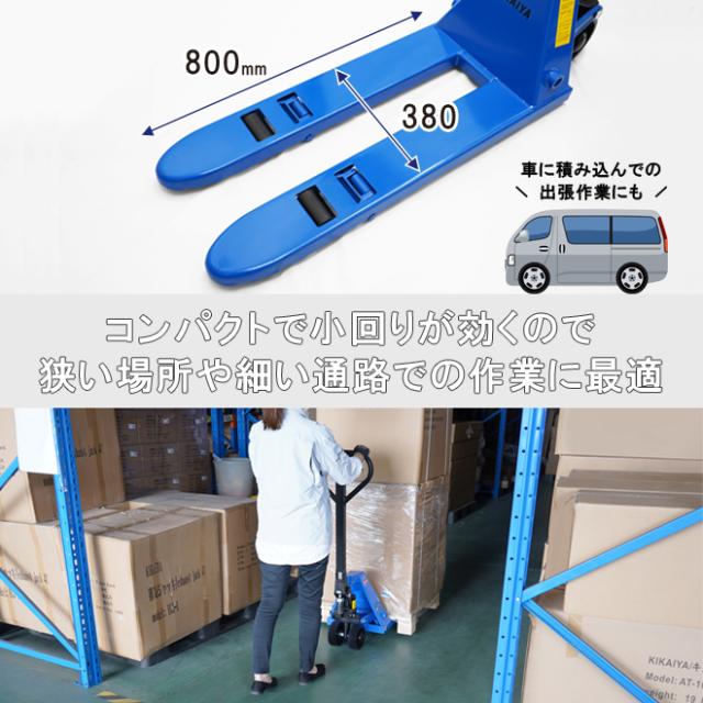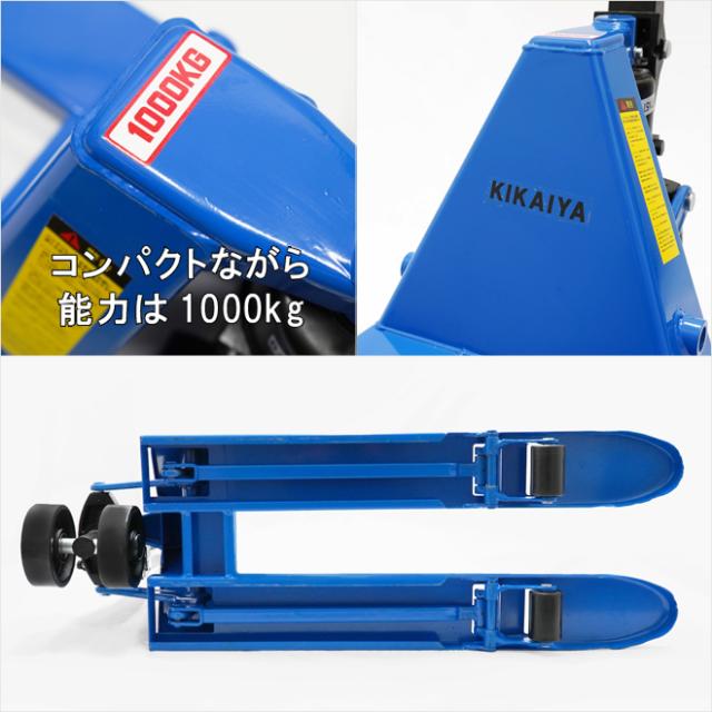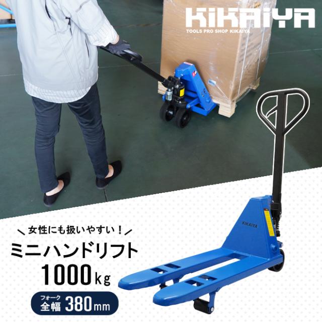 ミニハンドリフト 1000kg 軽量 コンパクト フォーク長さ800mm 全幅380mm 高さ62mm ハンドパレット パレットトラック 1トン KIKAIYA