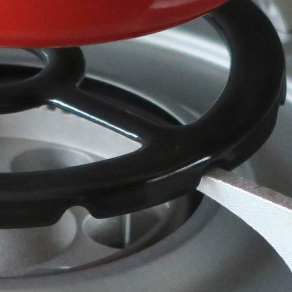 裏面が五徳にはまる設計なのでズレにくく調理中も安心です。温度センサー付きガスコンロの場合は、温度センサーに触れないようにのせてください。