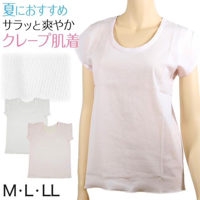 レディース インナー 半袖 夏 肌着 インナーシャツ 婦人 3分袖 M〜LL (下着 クレープ 綿100% 涼しい 綿 コットン)