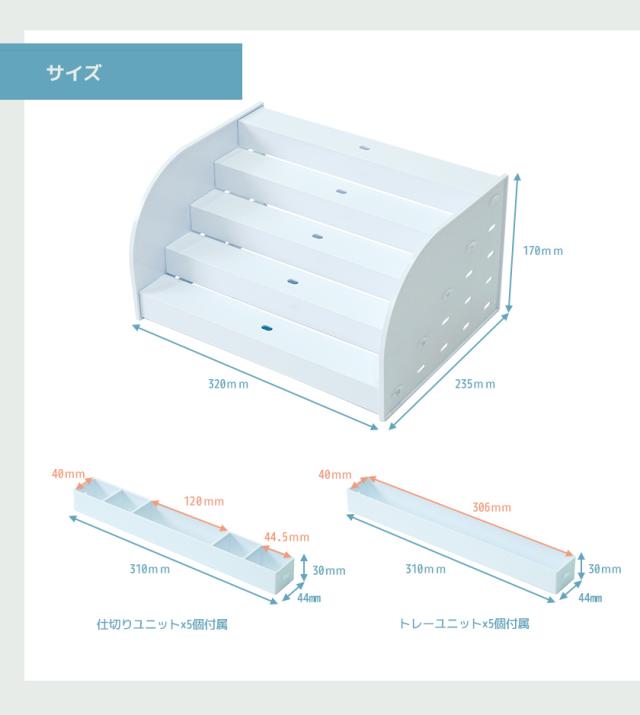 仕切りユニット、トレーユニット外寸:幅310×高さ30×奥行44(mm)