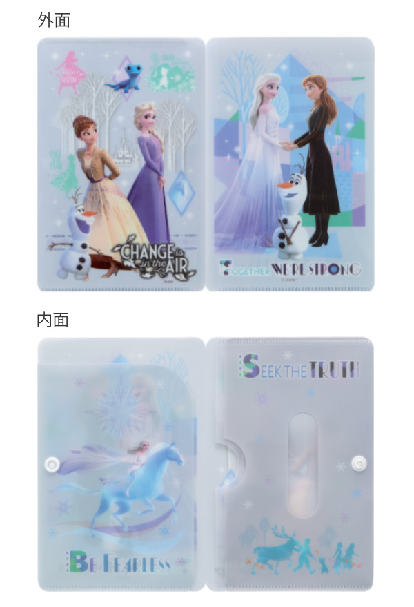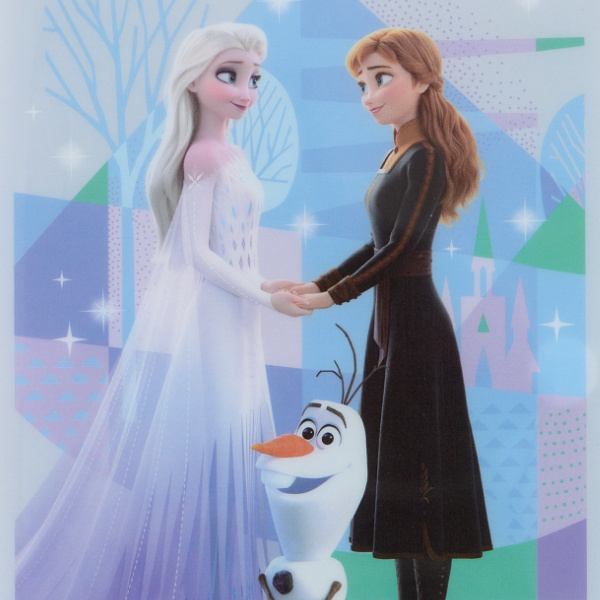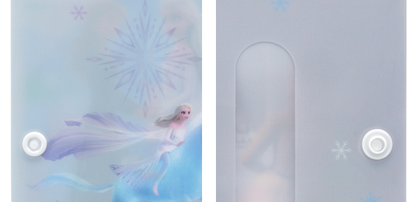 クリアファイルのようなケースの表面には、アナと雪の女王のデザインが描かれています。