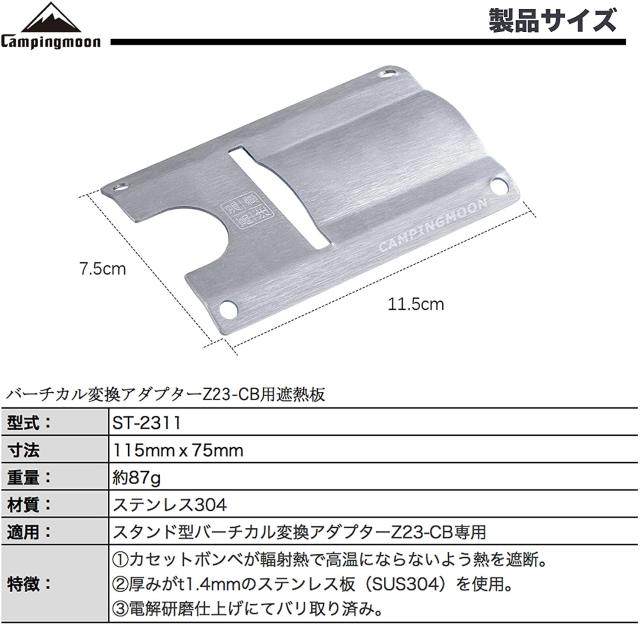 キャンピングムーン(CAMPING MOON) スタンド型バーチカル 変換アダプター Z23-CB 用 ステンレス304製 遮熱板 ST-2311