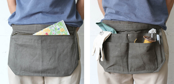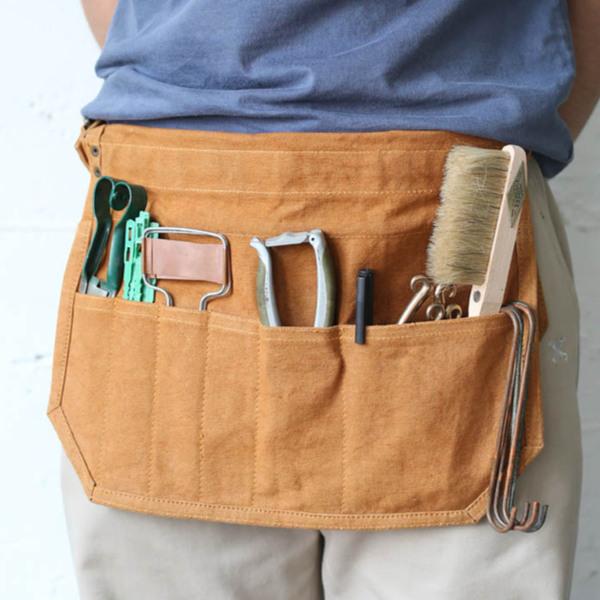 作業に合わせて使い分けが出来るツールバッグです。サコッシュのように肩にかけて使ったり、ベルトループに通して使うことが出来る2WAYです。ワックスコーティングが施されたキャンバス生地が、どこかビンテージ感を醸し出しています。