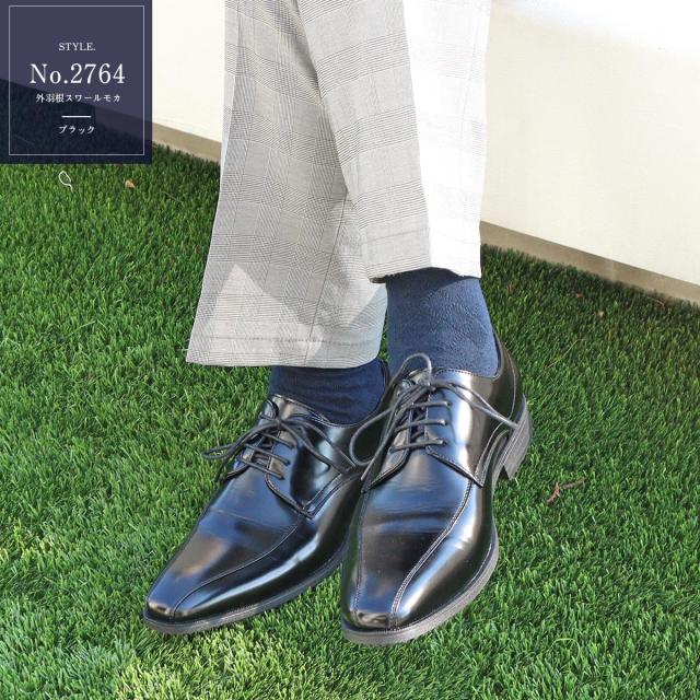 超軽量 ビジネスシューズ メンズ 革靴 外羽根 スワールモカ 靴 シューズ レースアップ 2.8cmヒール No.2764 24.5-28.0cm 黒 ブラック AAA+ サンエープラス ビジネス 紳士靴 定番 インソール 柔らかい 紐靴 痛くない 歩きやすい 通勤 会社 フォーマル 冠婚葬祭 276