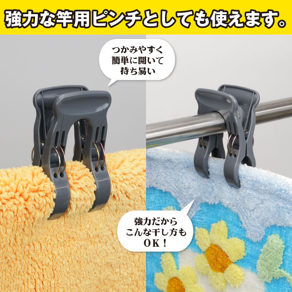 物干し竿の固定だけでなく、強力なピンチとしても使えます。
