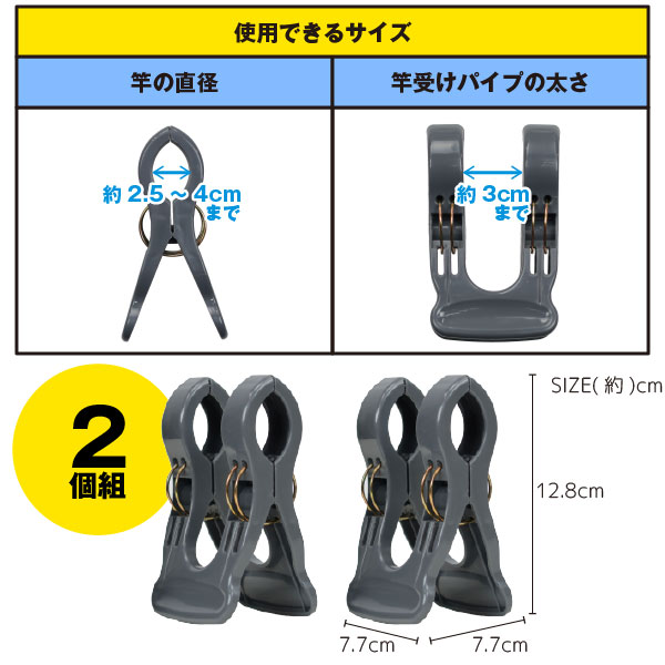 ワイド 竿 竿止め クリップ 洗濯 洗濯竿 滑り止め ロック ズレ 落下 防止 対策 固定 強力 大きい 洗濯物 洗濯バサミ ピンチ 強い 202102-04