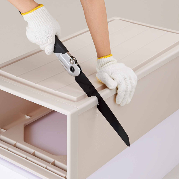 衣装ケースや風呂フタなどの大型製品をカットできます。小さくすることでゴミ袋に入るサイズになり、不燃ごみや可燃ごみとして出すことができます。握りやすいラバーグリップの持ち手です。