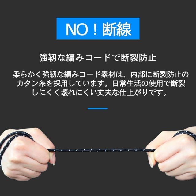 強靭な編みコード素材を使用のため、断裂しにくく壊れにくい