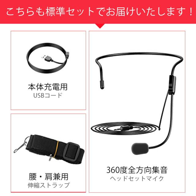 付属品:全方向集音ヘッドセットマイク,USB本体充電コード,腰・肩兼用伸縮ストラップ,日本語説明書 ※商品画像にはUSB接続口がありますがメーカー側の仕様変更の為実際にはありません