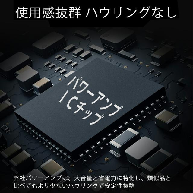 弊社パワーアンプにより大音量と省電力に特化、ハウリングも少なく安定性抜群