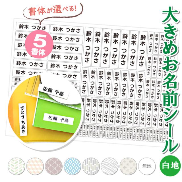 大きめお名前シール【白地】 書体が選べる【5書体】 お名前シール おなまえシール 名前シール ネームシール 名前 シール 大きい 大きめ タテ書き 縦書き 選べる書体 防水 耐水 入園 入学 準備 保育園 幼稚園 小学校 電子レンジ 食洗器 名入れ プレゼント 送料無料 新生活