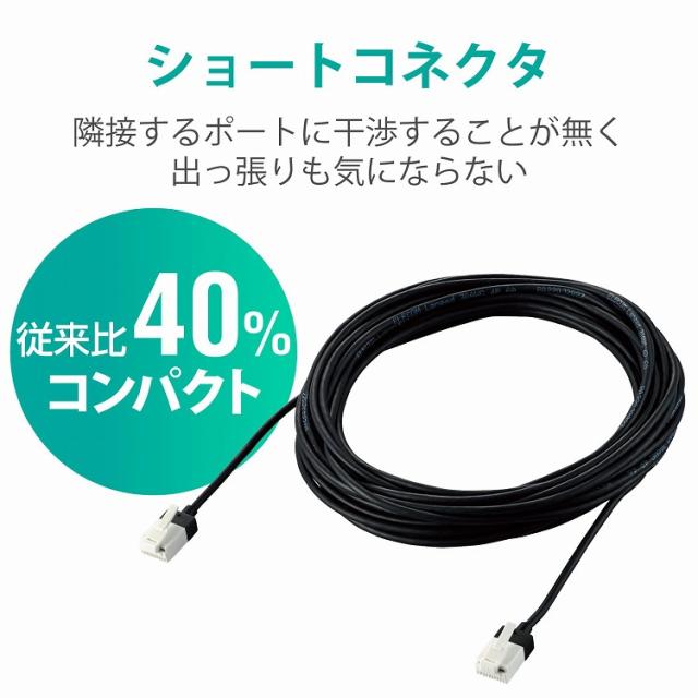 ■高速光通信に最適な、10ギガビット・イーサネットの「10GBASE-T」に対応しています。 ■従来比約40%の新設計ショートコネクタは、隣接するポートに干渉することが無く出っ張りも気にならない、スリムかつコンパクトなコネクタです。 ■インターフェイス:RJ-45コネクター ■ケーブル長:7m ■外部シース(被膜)材質:PVC ■爪の折れないコネクタ:○ ■モールド加工コネクタ:○
