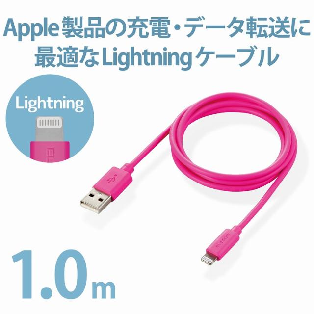 エレコム iPhoneケーブル ライトニングケーブル 1m iPad iPod データ通信 充電 USB-A Lightning ピンク MPA-UAL10PN(代引不可)