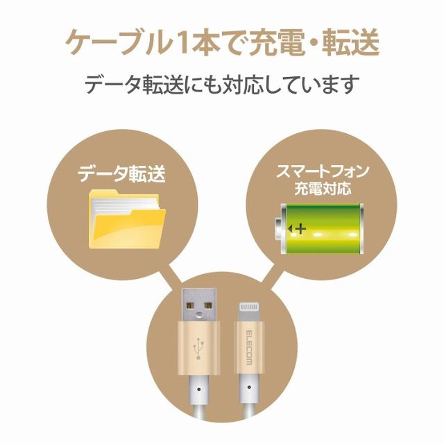 エレコム ライトニングケーブル 2m 準高耐久 Lightning(オス) USB-A(オス) RoHS指令準拠 ゴールド MPA-UALPS20GD(代引不可)【送料無料】