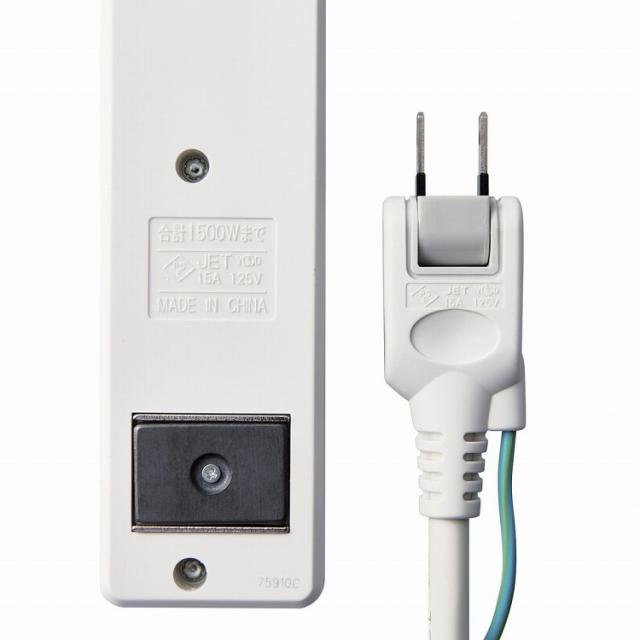 ■本体差込口形状:3ピン ■本体差込口個数:4口 ■AC定格出力電力:1500W ■AC定格出力電圧:125V ■AC定格出力電流:15A ■プラグ仕様:2ピン(アースコード付) ■スイングプラグ:○ ■絶縁キャップ付きプラグ:○ ■コード長:2.5m ■二重被ふく:○ ■ほこりシャッター:○ ■マグネット:○ ■カラー:ホワイト ■材質:本体:ABS樹脂/プラグ:PVC/差込口:ユリア樹脂 ■外形寸法:約 幅215×奥行44×高さ30(mm)(ケーブル含まず) ■質量:約510g ■使用可能地域:日本国内 ■電気用品安全法:PSE適合 ■環境配慮事項:EU RoHS指令準拠(10物質) ■保証期間:なし ■付属品:取扱説明書