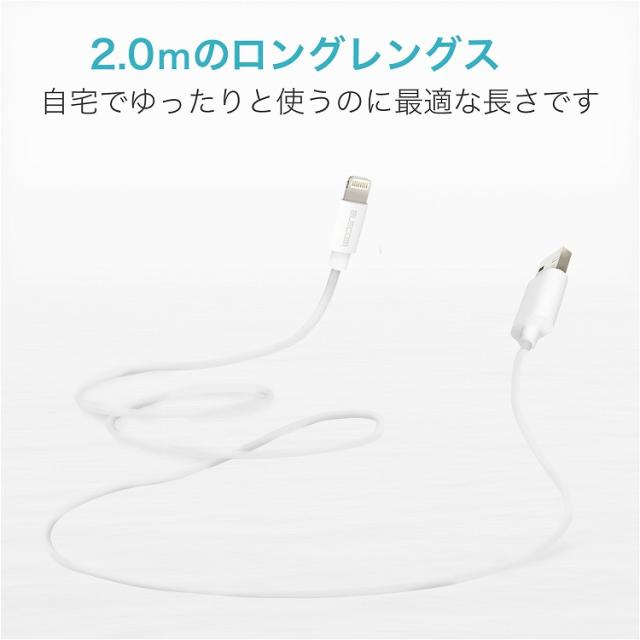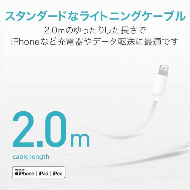 エレコム ライトニングケーブル 2m Lightningiphone / ipod オーディオ向ケ スタンダードタイプ データ転送/充電用 MPA-UALO20WH(代引不