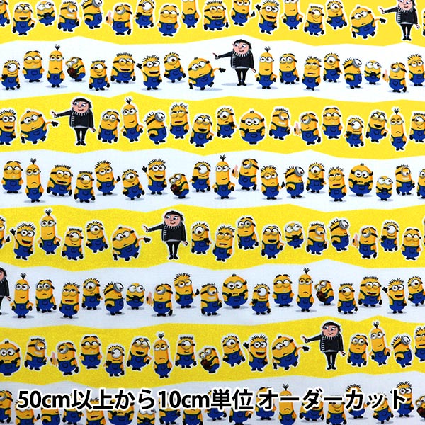 【数量5から】生地『シーチング ミニオンズフィーバー ボーダー映画柄 イエロー G-4147-1A』 KOKKA コッカ