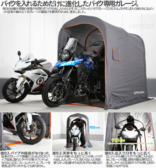 送料無料 簡易型ガレージ バイクガレージ 中型バイク専用