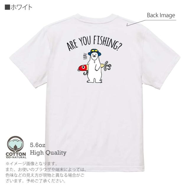 釣り Tシャツ 半袖 釣りざんまい ルアーとシロクマさん 5.6oz (オンス) 綿100% メンズ レディース 洗濯 大きいサイズ ホワイト ブラック グレー アイボリー 白 黒 灰色 肌色 春 夏 秋 冬 オシャレ 釣り 魚 ルアー