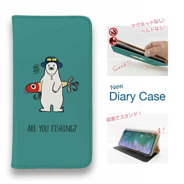 スマホケース 手帳型 ベルトなし iPhone17 Pro Max iPhone Air iPhone16e Pro Max 16 Plus 15 Pro Max 14 Plus Xperia 10 VII Galaxy AQUOS Pixel10 Pro XL 釣り 魚 ルアー 釣りざんまい ルアーとシロクマさん