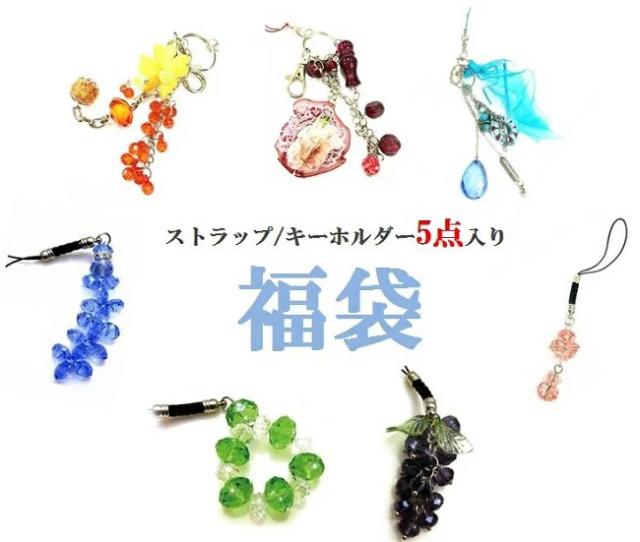ストラップ キーホルダー 5点入り 福袋 \1980 携帯アクセサリー スマホ 鍵 キーリング 開運水晶ストラップ パワーストーンストラップ 手作り ハンドメイド デコ キラキラ カラフル かわいい お洒落 ファッション 子供 大人 女性 男性 メンズ レディース ギフト プレゼント