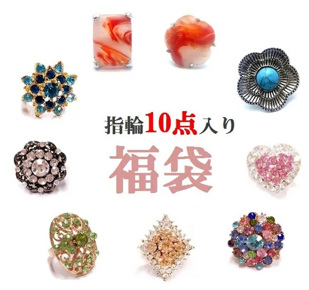 指輪 10点入り 福袋 \2980 アクセサリー リング フリーサイズ カーネリアンリング パワーストーンリング ターコイズ ラインストーン キラキラ かわいい お洒落 ファッション カジュアル オフィス ウェディング パーティー 子供 大人 女性 レディース ギフト プレゼント