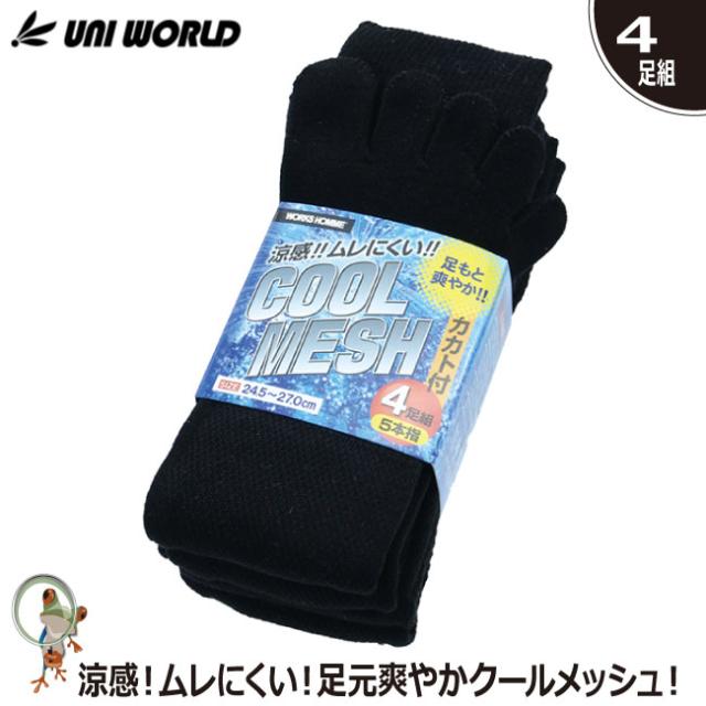 ☆ソックス 靴下 クールメッシュ ブラック カカト付5本指 4足組 WH-1335 夏作業 暑さ対策グッズ 吸水速乾 メッシュ 通気性