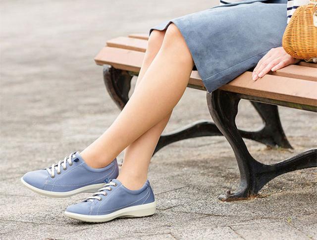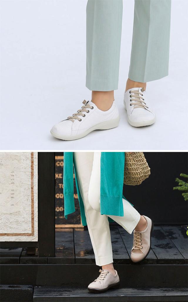 伸靴紐は伸縮性があるため、スリッポン感覚でそのまま脱ぎ履きがしやすいレディススニーカーです。